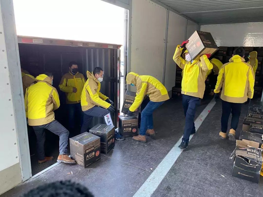 疫情當(dāng)前,裝卸工人緊缺,農(nóng)投員工親自上陣,價值百萬元的物資在農(nóng)投人的接力下,一箱箱“金谷農(nóng)場”大米、一箱箱大豆油和蘇打水運(yùn)進(jìn)捐贈醫(yī)院,及時送到奮戰(zhàn)一線的醫(yī)務(wù)工作者手中,責(zé)任和愛在農(nóng)投人的手中傳遞、傳播……