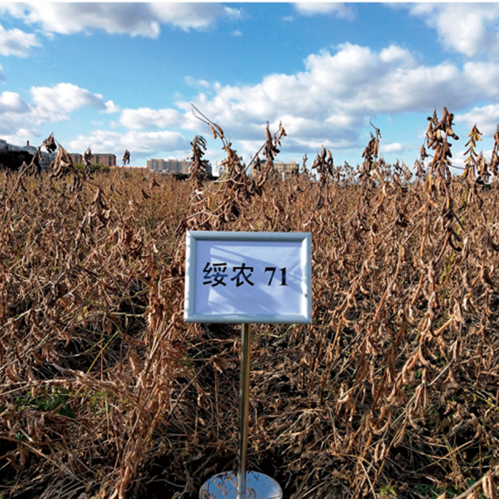 紫花尖葉,灰色茸毛,亞有限結(jié)莢習(xí)性,株高90厘米左右,有分枝,莢彎鐮形,成熟時呈褐色。種子圓形,種皮黃色,種臍黃色,無光澤,百粒重24.0克左右。兩年平均品質(zhì)分析結(jié)果:蛋白質(zhì)含量45.55%,脂肪含量